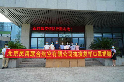 2020年7月28日上午,我校“产学合作 协同育人”项目合作办学单位——北京民用联合航空有限公司向我校捐赠2万只防护口罩,助力我校疫情防控工作。我校副校长何仕率后勤处、继续教育学院相关负责人与北京民用联合航空有限公司代表杨文富先生及其项目组相关负责人出席捐赠仪式。